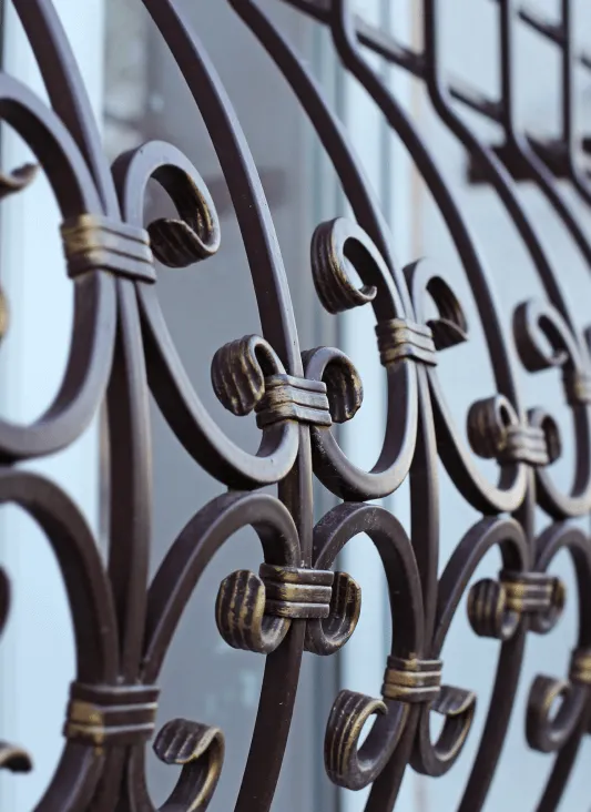 Carbon steel frame filled with the pickets of your choice: Straight bars (round or square), curved bars or forged steel pickets.